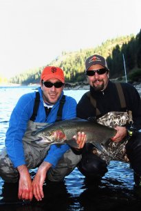 No worries, really. There are so many steelhead filling up the Columbia Basin fisheries this year, including Idaho’s Clearwater River, that anyone has a chance to hook up whether you get out of bed early or not. Case in point: late that day, floating the river with two buds from Missoula, Jayme Goodwin and Jim Nave, Goodwin hooked up on a six or seven-pound A-run. After a brief shoreside celebration (whip it good) Nave pulled oars upstream and we made a second pass through the drift. And Goodwin, spewing major karma about the just landed fish, tagged another, this time a B-run buck, maybe a 15-pound fish. More celebration and then a long pull through deadwater to the takeout, where we picked up from the night before and trod into Orofino for more late night shenanagins. Last things I remember from that night was that blonde girl’s foot in my friend, Dan’s, face and my spirited bout with a taxi driver about the merit of his rig and his fees.