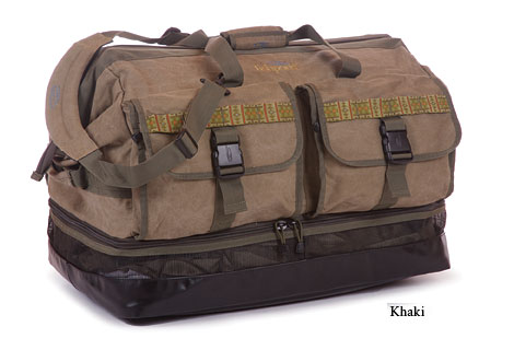 The bag’s greatest attribute is its anvil-style, wide mouth top opening, which allows you to “peel” back the top of the bag and easily access your gear, even those items that are at the bottom of the bag. In addition, there’s a vented bottom compartment for wader and wading boot storage. It also includes a flip out mat that can be used to stand on while gearing up or down in muddy or wet conditions. If the main compartment and the wader storage area weren’t enough, there are three oversize outside pockets for additional storage, a great place to keep tippet spools, books, flasks, snuff tins, and cigars.