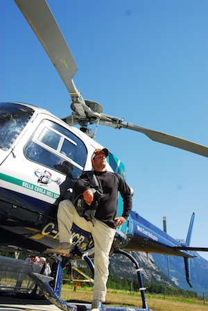 Then, yesterday, at noon, we take off from Bella Coola in a sweet helicopter and we get the ride of our lives…and I mean that in a good way. I think we got VIP treatment from the pilot, a cool French-Canadian with a wicked sense of humor. At one point in the flight, shortly after piling over a 4,000-foot drop, and just as we’re getting ready to carve between sheer rock walls in the Dean River Canyon, the pilot, Richard, turned to us, rubbed his nose and said, “Uh, I got something in my eye.”