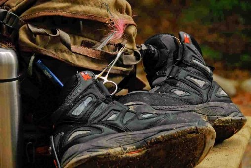 I wore the Korkers Guide Wading Boot for a week on the Dean River and discovered my answer to recent wading woes. I fished them hard and beat on them and nothing failed, not the OmniTrax soles or the unique Boa wire lacing system. Worn hard, put away wet.