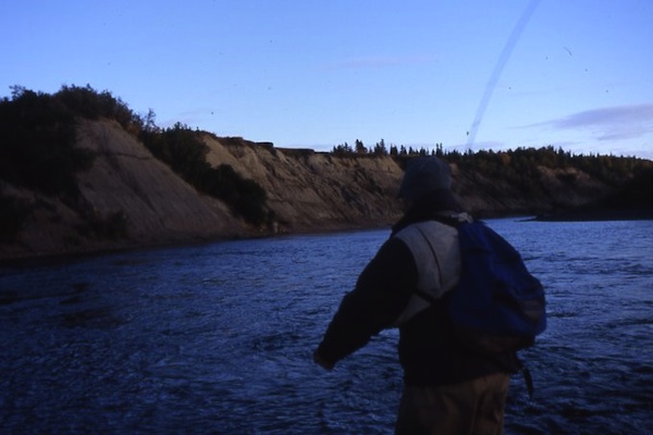 To facilitate upstream movement, the outfitter dropped my friend, Troy, and I on the bank and pushed upstream with my father in the bow. As they turned a corner out of site, I wondered when I might see them next. I kicked a few rocks on the gravelbar and said, “No extra skiff in camp. No radio. No food. No water. No rifle. A freeze expected tonight. Running a boat over rocks and logs? What the …” Troy peered into the brush, pondering grizzly tracks in the sand. “Could be a long night,” he said adding, “I hate grizzly bears.” Fortunately, the shuttle method worked and at dark we were back at the cabin, half-frozen, commandeering that pile of wood on the porch and the stove inside.