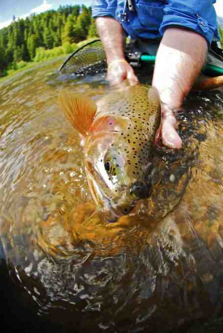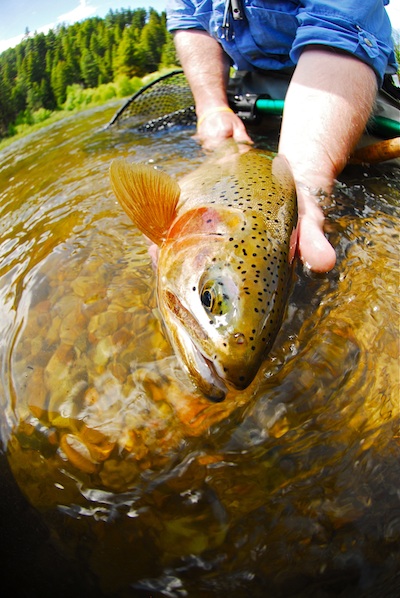 The water is still high in most of the northern Rockie’s drainages, but some are running relatively clear and offering decent fishing. The West Fork of the Bitterroot and the mainstem Bitterroot are good examples. Took a trip there on Wednesday and managed a few fish. As the water drops, these streams will get much betterand we knew we were pushing the envelope by launching rafts on the West Fork…but a guy has to fish, right? So we took our chances and kept attentive to the sticks. Thought you would enjoy these images.