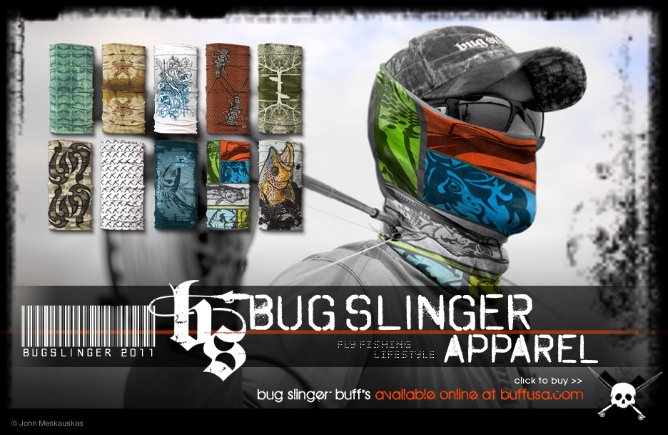 You may already know that Bugslinger makes some killer t-shirts and gear, including the wicked belt I’m wearing right now, but you may not know that Slinger hooked up with Buff, which makes UV face and hand protection for anglers, and produced an award winning design.