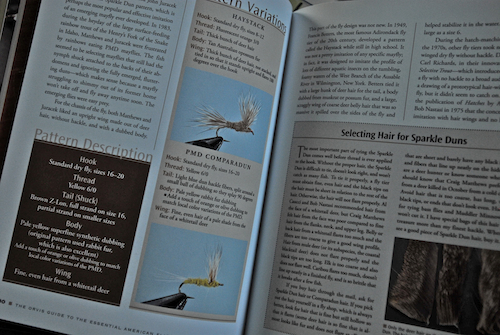 Here was a book in my hands that covered history and tying info for some of the best patterns on the planet, many of which fall into the “go-to” lot for me. Looking deeper I saw that the patterns and the instructions were fully illustrated, in nice, big, easy to see images. Looking at the description for a Parachute Adams, which is a challenge to young tyers, I figured a person with Essential American Flies at their side would have a pretty good chance of pumping out passable ties on their very first tries.