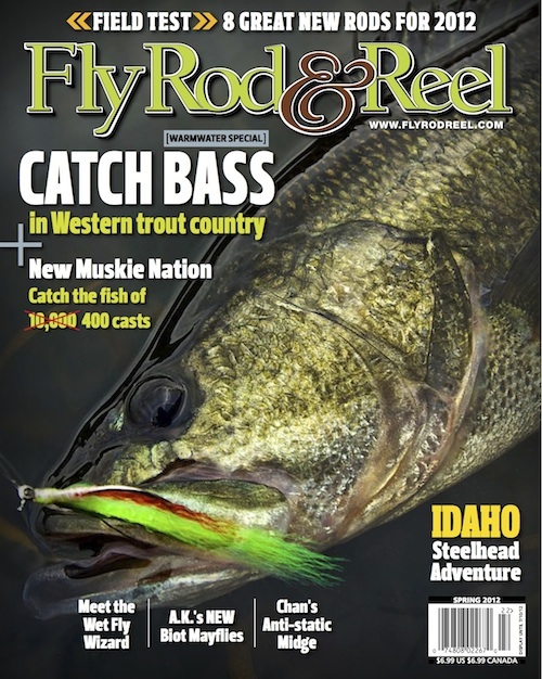 Just a heads-up to let you know that the Spring issue of Fly Rod & Reel is on newsstands now. Took quite a bit to put this one together, but I think it’s the best of the four issues I’ve produced yet. I took a warmwater focus on this one because bass and pike and muskie and panfish are overlooked, in my opinion. In the pages of Spring are articles on western bass and muskie in the Midwest. Gierach tells about smallmouths in Wisconsin, too. Also, I penned a piece on fishing steelhead 800 miles from saltwater, in Idaho. There are other compelling pieces, too, including Davy Woten’s wet flies, stillwater guru Brian Chan’s anti-static midge, details on 8 new rods ranging in price from affordable to lavish. Grant Wiswell details fishing for vampire fish in Bolivia and Seth Norman offers a great review of Andy Mill’s book, Tarpon. Keep your eyes open for the mag and let me know what you think. You’re feedback, good and bad, is imperative to me producing the best print publication in the fly fishing world. Help me out brothers. And let me know what you think of the cover. I think it rocks and is catchy, but you may have another opp. Let me know.