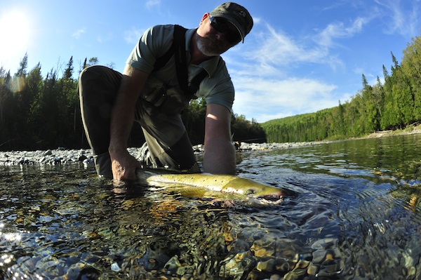 That’s not to say that fishing was easy. I arrived during low and clear water conditions and after a long, long dry spell. The fish were what the guides called “stale” and weren’t really eager to move for flies. But we established a routine of working those fish with different flies until, finally, finally, one would eat. I landed 10 salmon in seven days and lost two others that were on the line. I had two other fish grab, but only long enough to know for sure that it was a fish and not a rock. That was plenty for me. I always go into trips for anadromous fish taking everything with a grain of salt and saying that catching one fish will be enough. I did that in spades and have killer images to share. I’ll offer a few here to give you a feel and I’ll follow up with more over the days to follow. Eventually, meaning this fall, I’ll put together a broader description of the trip and why you might want to book now for next year. This is one of those trips of a lifetime, I discovered, that every angler should try to do at least once. Atlantic salmon are a great fish and you see hundreds of them while fishing these two rivers. Just watching those fish is worth the visit. That we can cast to them and gauge our angling abilities just makes it that much better. This, I have to tell you, was a great life experience and I now have new friends, guides and other clients, who will last a lifetime, I’m sure. Enjoy.