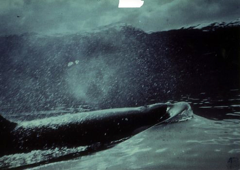 In quick motions, I dipped the paddle once on each side to make sure his sonar knew my precise location, then laid the paddle down and waited, camera to my eye, all heartbeat and adrenalin. A surge; the boat lifted. He surfaced across the bow, five feet in front of the boat, lifted it with his own bow wave, brushed it in his arc, blew air and water. Was there an eye looking at me? I saw him only through the camera lens and pressed the shutter as the huge bulk rose and went down. I was gasping. The droplets on my arms were from his wet breath. Male? Female? I wasn’t certain, though the dorsal fin seemed to be five feet high, so that would be a male. In those days before orca sightings and studies were frequent, I’d seen what an orca naturalist would have given five years of life to see. Dazzled, bewitched, and so lucky to have been there. Orcas are in the dolphin family, and many people find a special communication between man and dolphin. Had he seen the yellow boat from a distance and been curious? I don’t know. Their diet is fish and sea mammals. Am I a sea mammal?