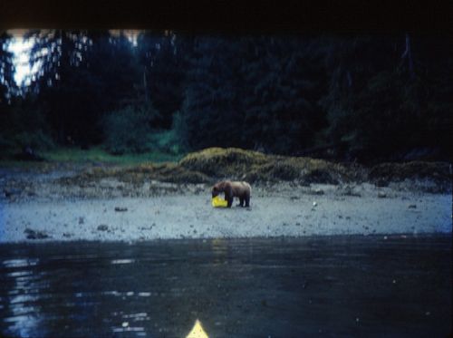 AUDREY SUTHERLAND: Yes, but bears usually aren’t a problem. They’re curious, but they’re wary, and I’m curious, but very wary. They would get to about fifty feet and stop and think about it. In my book I said something about if the bear approached closer, then you would climb a tree, and if you were lucky the bear wouldn’t climb up after you. But I think that depends on what kind of a bear it is. Brown bears are the more dangerous. I heard somewhere if you climb a tree and the bear climbs after you it is a black bear, if it pushes the tree over it is a brown bear.