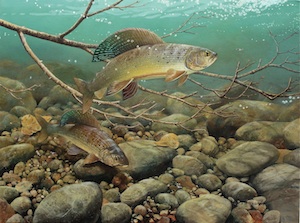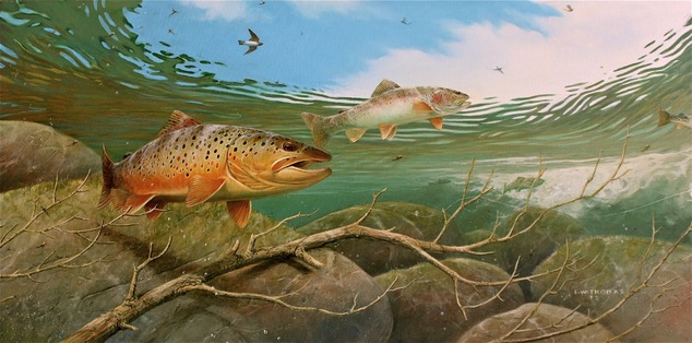 Super excited to announce that my father, Fred Thomas, just won the Leonard J. Meiselman Memorial Award for Realistic Painting for a piece that was accepted in the 2012 Society of Animal Artists show. His work, called Rocky Bottom Grayling, depicts a couple of those fish in classic habitat, somewhere in the northern latitudes. And it indicates his interest in that fish. I would say that Fred doesn’t really care about the size of a fish, although he’d rather catch some monster rather than a dink any day. He’s more interested in casting dry flies and seeing fish rise than anything else. And grayling are a great species to do just that. They are eager for dry flies and rise like crazy, often leading to days where an angler can land dozens from a single run.