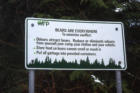 I have, like, 50,000 images in my library. When looking for specific shots I often come across others I’d forgotten about. That’s what happened today and I thought I’d share. I shot this sign on northern Vancouver Island along the Marble River, just before a friend and I started our long hike through the old-growth to fish for rainbows and steelhead. We caught some rainbows, good ones, but failed on the steelhead. The whole time I wished I had eyes in the back of my head.