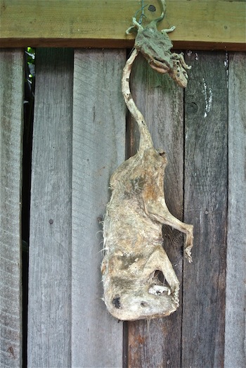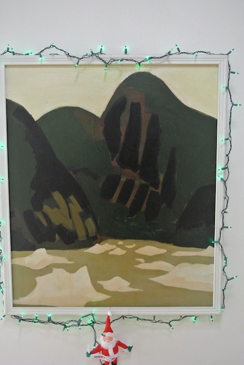 I love being home for the holidays and this year I was able visit Seattle and stay at my parents’ house. Always on the lookout there for all sorts of interesting items. Wandered a little with the camera and found these things. The chipmunk painting is my dad’s, Fred Thomas. I don’t know where he came up with the opossum. The dried rat is probably from our apple trees. The painting with Santa hanging off of it is Fred’s and probably depicts Fredrick Sound in southeast Alaska. The cat and lobster are on the deck.