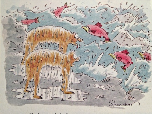 The debate is not over. Look for many followups on this subject this later winter and spring. And I’ll keep you posted on whether Jax makes the big leap and decides to lead with wild Alaska salmon on its menu instead of the inferior and unhealthy feedlot impostors. In the meantime, I came across this cartoon in the New Yorker and thought you should see it. I think it speaks to the same mentality of chefs and restaurants that serve farmed salmon—the easy way and the wrong way.