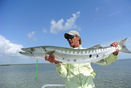 Bonefish aren’t the only game in town. When I visited in February some clients saw a few permit. We saw plenty of sharks and, in retrospect, should have spent more time targeting them. We did throw at some barracuda and I landed one that may have weighed 35 or 40 pounds.