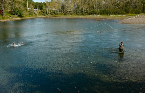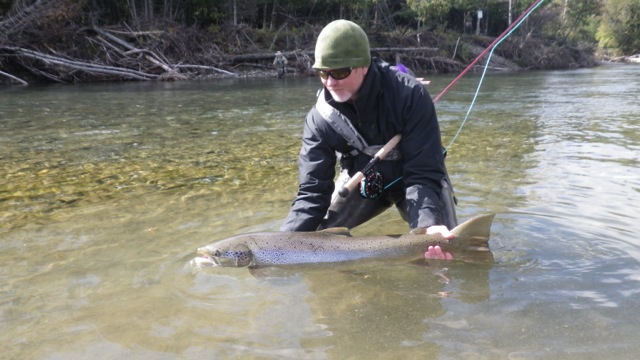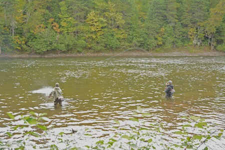 I stayed at Salmon Lodge (check here for rates/dates) during the entire trip and was treated tremendously as was the case last year. I fished the Petite Cascapedia two days, the Grand for three, I believe, and the Bonaventure for one. It was a great time to be in on the Gaspe, a great time to visit the guides at Salmon Lodge and to fish three great rivers just as fall was setting in on the region. If you are an anadromous fish freak, and you like throwing spey for some fish that are much larger than steelhead, on average, this is a trip you should try and swing. Any takers? Let me know your interest level and perhaps I can set something up. NOTE: MORE PICS BELOW.