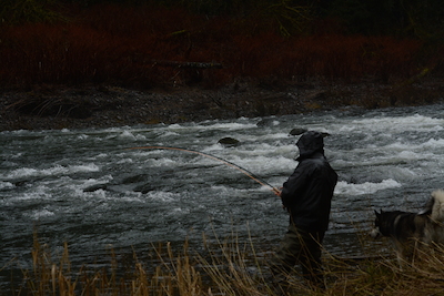 That’s the way it was in Oregon a few days ago, when I was throwing with Jeff Hickman of Fish The Swing. We were fishing the coast and the wind and rain was hitting us in waves. By the end of the day we were totally soaked, all along the arms, all the way to the armpits, and again from the hood to the hips. It was bit miserable at times, but we fished until the very last light, hoping to find steel. Or should I say, another steelhead. Earlier, sometime around 2 or 3 in the afternoon Hickman had said, “Oh, I just saw a steelhead roll.” He dropped me off above the fish, then headed downstream. I stripped off the shooting head and sinktip and rolled it out on a current seam. I think I only cast twice before a fish hammered my fly. A few minutes later I had it in the shallows and Hickman was racing up the bank with my Pelican case, in which I store my camera bodies and lenses. Hickman snapped a few shots of me and at some point my glasses fell off my hat and landed in the rocks. I didn’t think much about it because I’ve dropped Smith glasses plenty of times and never saw any damage from it. So I just picked up the glasses, put them on my face, stared directly into the coastal storm and those sheets of rain being windblasted into my grill, and went on fishing.