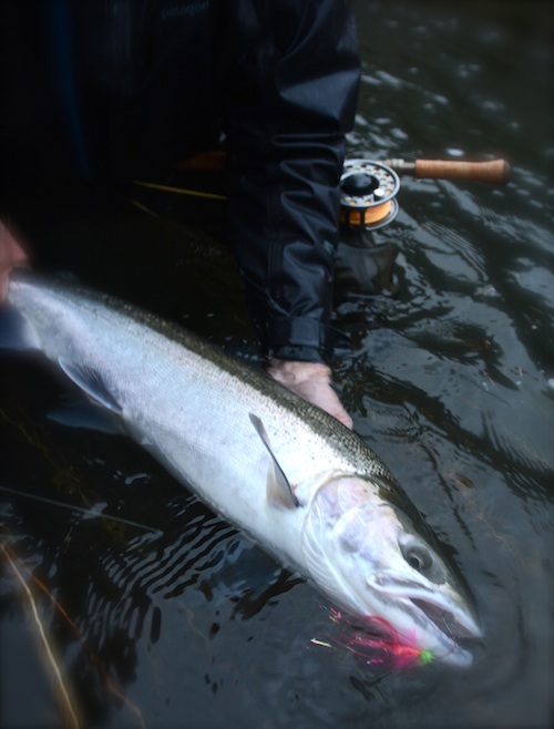 I thought I’d timed it just right, expecting rivers to rise in the rain and then quickly fall, a bump that could bring in lots of chrome metalheads and give the “stale” fish, which had been in the river for a few weeks, a blast of energy and thoughts of moving from their holdover spots to new ground. When that happens, steelhead often get real grabby.