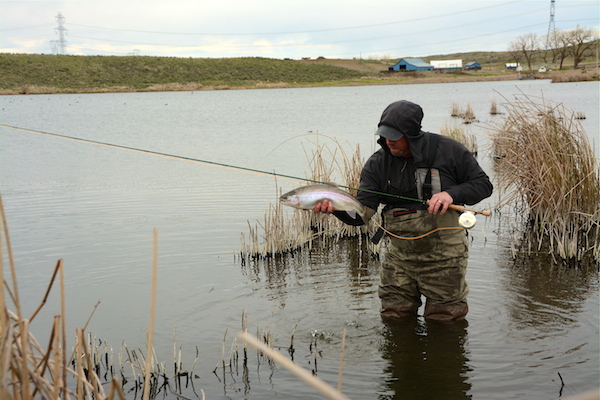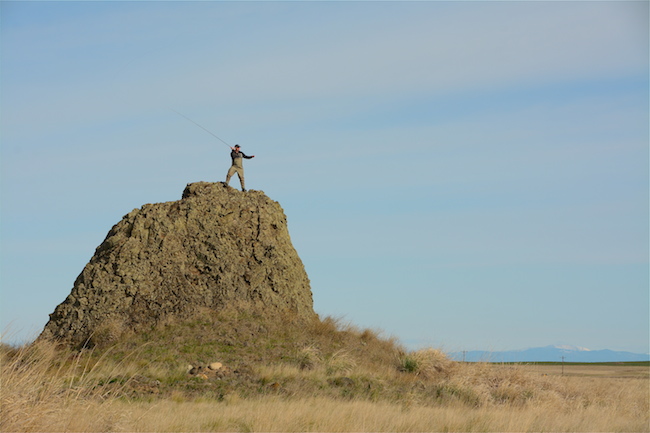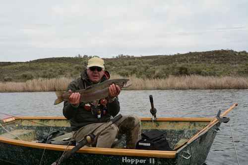 I met Sage, Redington, RIO and Sitka Gear rep George Cook in the eastern Washington desert this past weekend, armed for our annual battle with some giant rainbow trout that prowl two large and fertile Columbian Basin lakes. These lakes are full of scuds and leeches and the chironomid emergences are legendary—when it happens each day the fish key in on those abundant morsels and chow down big time. You can fish a midge under an indicator and lay waste to the pack, or you can just fish a chironomid on a floating line with no indicator and a hand twist retrieve. No matter the method you will tangle with fish that range, in some years, to 30 inches. This year, we landed ‘bows to 28 inches with the average fish going somewhere between 19 and 22 inches. This is one of the best lake fishing experiences in the West and there may still be time to get in on the show this year. If you’re interested send an e-mail to me at Anglers Tonic (greg@anglerstonic.com) and I’ll put you in touch with The Man. Enjoy these pics from a great weekend at Back To The Wall.