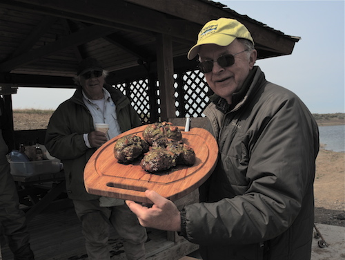 Nobody goes hungry at Back To The Wall, thanks to the kind offerings from my fellow angling guests. Here, Warren Sly gets ready to dime up the seasoned lamb.