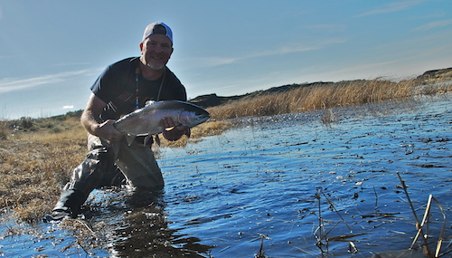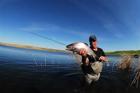 Headed to eastern Washington for my annual lake fishing foray and thought I would share some images of past success. These lakes rest out in the scabland north of Soap Lake and are tremendously fertile. The fish grow faster here than almost anywhere else and they are super aggressive and solid in April. That means a big, big bend in a five-weight. It’s going to be a big-time leech and chironomid show, as it always is. I’m loaded down with Snowcones but I’ve got some new techniques and flies to try out, too, and I’ll let you know how those work when I return. For now, enjoy the visuals and look forward to more next week.