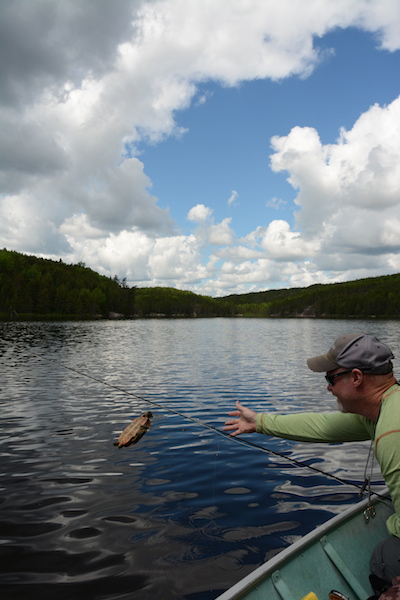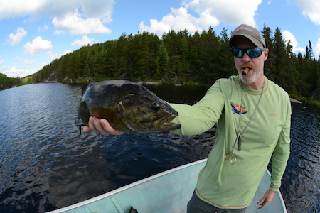 Just spent five days at Hawk Lake Lodge in northwestern Ontario, trying to figure out how to catch walleye on the fly, and spending the rest of the time slamming smallmouth on poppers. In the evenings it was all fun and games with a great cast of characters. When fishing out of Hawk Lake Lodge you get great access to the big main lake, where the big walleyes