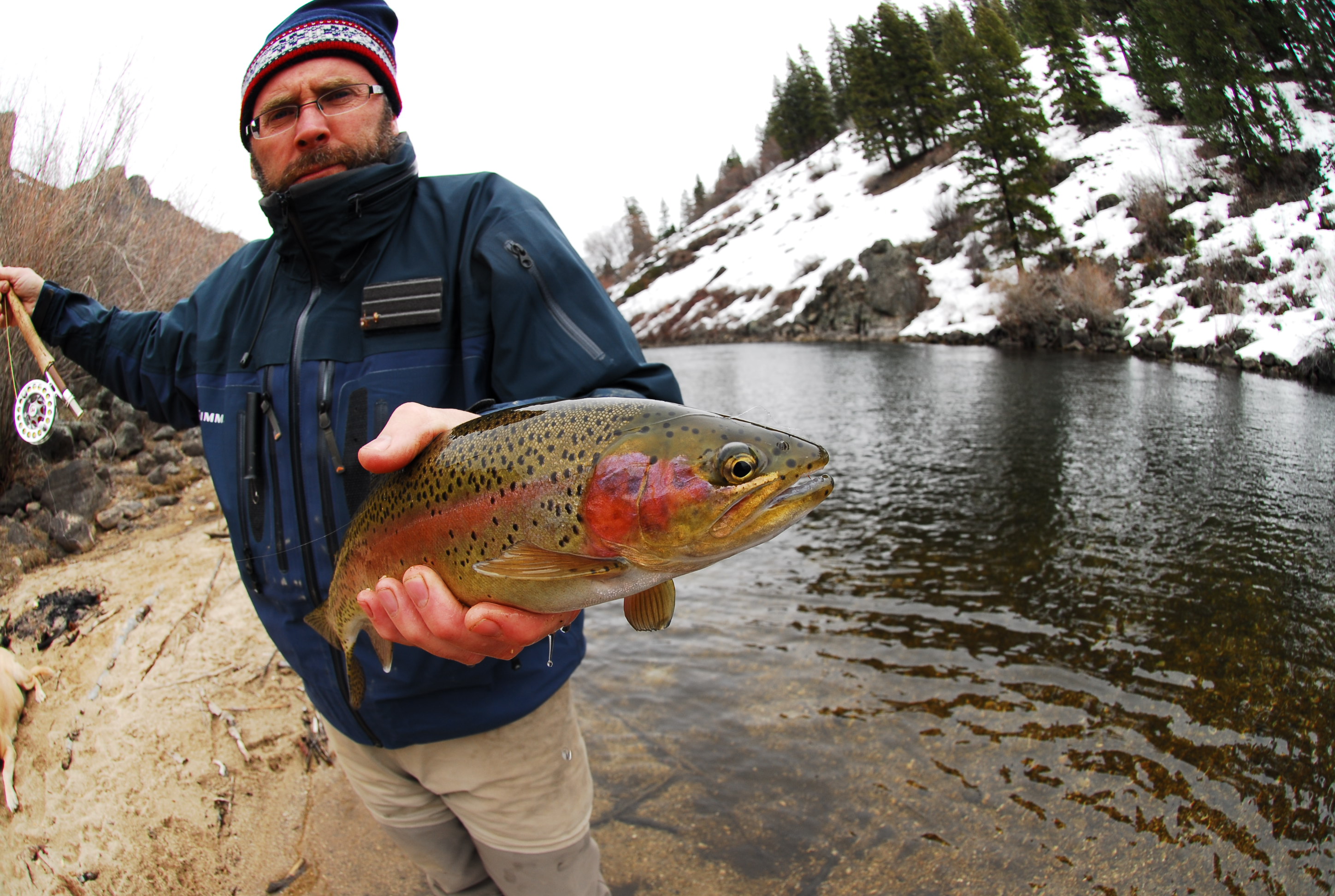 South Fork Boise: Great rainbow trout fishing here. And good size to boot. This is a tailwater so it fishes well right on through winter. Good midge hatches are the key here. Bring a variety of imitations in black, brown, and red. Fish them under an indicator and behind a size 18 PT. Bounce the bottom and hold on—these fish fight hard even during winter. Be prepared in case you see a blue winged olive hatch.