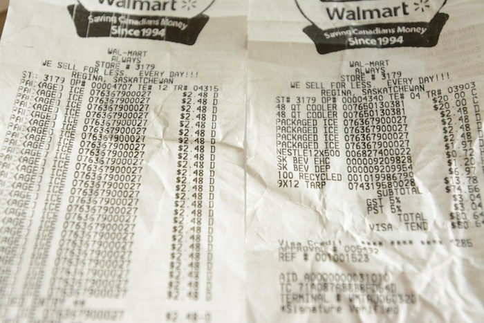 I turned through receipts that reminded me of some great dinners, and others that brought back memories I can’t even share here, but the one that caught my eye more than any other was one I collected in September, in Regina, Saskatchewan, at a Walmart, at 8:41 AM.