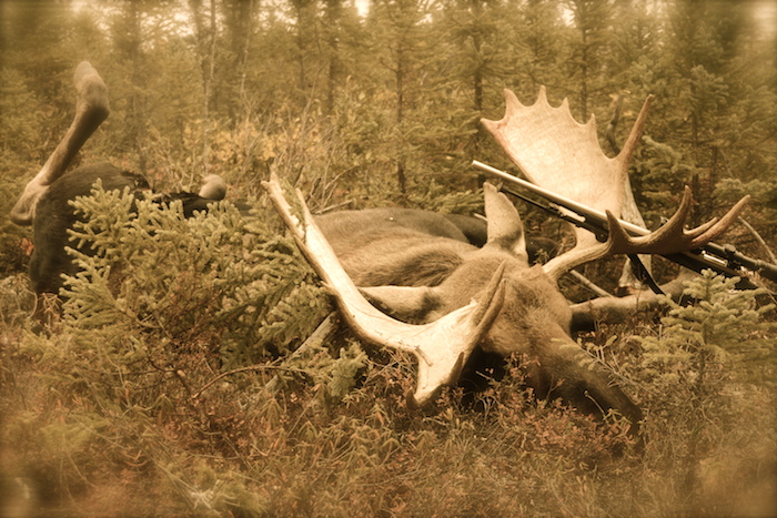 I was traveling from northern Manitoba to Missoula, Montana, and the back of my truck was loaded with moose meat, plus a moose skull and antlers, and a moose hide. Problem was this: it was already 70 degrees in Regina and by the time I crossed into Montana the temperature would be in the 80s. I’d worked hard for that moose and now I needed to save it from the sun. That’s when I walked into that Walmart, in blood speckled pants, with an unshaven face, and bags under my eyes from having only slept three hours in the past 48 hours. If you are starving for attention, walk into a Walmart at 8:40 in the morning, in blood-stained pants and buy two coolers and 38 bags of ice. When I did just that I think everyone at every register, including employees, turned their heads my way. I paid, shrugged my shoulders at every one and wheeled out of there with the ice stacked high.