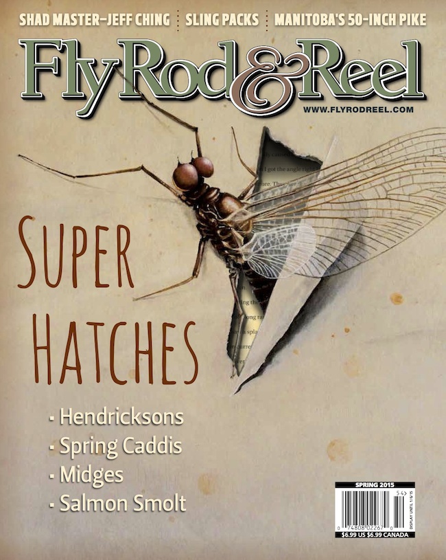 Just finished up the spring issue of Fly Rod & Reel and thought I would give you a heads up to look for it on the newsstands now. We’re pretty proud of this issue for several reasons, including our decision to commission art for the cover. Fortunately for me I didn’t have to look far to find the right artist for the job. As most of you know, my father, Fred Thomas, is an award winning wildlife artist and a great outdoorsman and his illustration of a mayfly bursting through the cover of FRR is, in my opinion, a classic. But it’s not the only reason to check out this issue—we detail four super-productive spring hatches, Leeson reviews modern sling packs, Seth Norman takes us on a cruise through the Sacramento Delta for bass, Dave Hughes offers three easy techniques for subsurface trout, Gierach defines a bad day, I detail my efforts to catch a 50-inch pike in Manitoba, and we consider the addictive nature of the American River shad run. There’s more, of course, but those are some of the highlights. Check it out and let me know what you think of the cover. Do you prefer art over an image? Just curious. GT