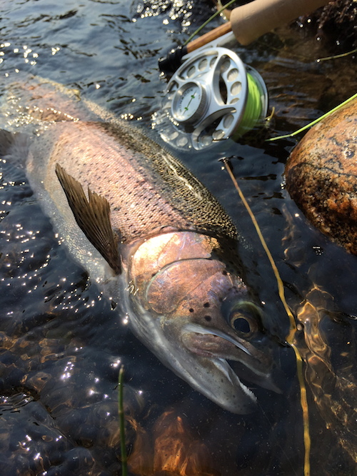 This one surprised me. I was fishing a smallish stream and was thinking nine-to 12-inchers when this beast crushed a fly. Fought like and looked like a summer run steelhead.