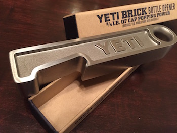 For those of you who have it all, meaning total gearheads like me, you might want to pick up the new Yeti Brick bottle opener which, if you add wheels, can double as a personal defense tank if we ever get invaded. To get one, however, you have to wait until tomorrow, when they officially go on sale.