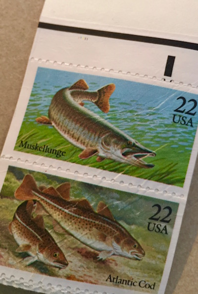 Found these at my feet in a driveway recently. I think they fell out of a box I was carrying. I’ve been moving quite a bit of “stuff” from my folks house and these must have been mixed in with the lot. I don’t know when they were printed or if they even have any value, but I do think they are pretty cool. Catfish and Atlantic cod? Those don’t really rip at my core. But bluefin and muskelunge . . . oh yea! Thought all of you might enjoy seeing these. Wish stamps still cost $.22.