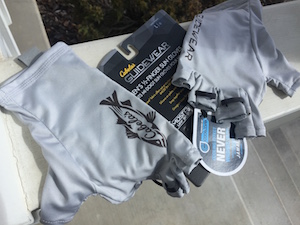 I got a couple pair of Cabela’s Guidewear 1/2 finger gloves over a year ago and spent all last summer and fall in them. Why? Because owning nasty sun-scorched hands when you hit your 50s and 60s isn’t what I’m looking for. And, because I’m starting to really feel that all that sunblock and mosquito dope we’ve been putting on our bodies for all these years isn’t really that good for us. I blame my recent firing on DEET going straight to my brain.