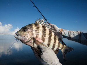 Over the years I’ve caught all sorts of fish on saltwater trips and in some cases I had no idea what they were. But a couple weeks ago, while targeting redfish in Florida’s Mosquito Lagoon, just off the Space Coast, I spotted a fish an instantly knew what it was—sheepshead.