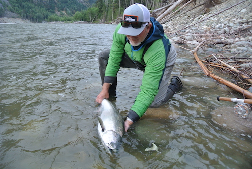 By the end of the week we’d each hooked, lost and sometimes landed enough fish to call it a good week of fishing and a great week of company. Sturn, in fact, fought a fish for an hour and 11 minutes only to lose it without ever really getting a good look at the beast. And believe me, there was no “nursing” the fish. Those Dean kings, and the steelhead for that matter, including a 20-pounder that I landed on the fourth day, are super strong and tough to turn. Durning the week I slid into some sort of melancholy that has escaped me for eight years. Hopefully this is a trend. Because dying from stress isn’t what I would call “fishing it well.”