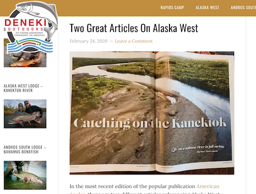 story and this one is great. In the attached image you’ll see that Deneki Outdoors, which owns Alaska West on the Kanektok, gave a shout out to the piece. Again, go hit the shelves, find the magazine and give it a read or, best, buy the mag and read the entire thing.