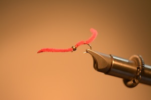 them. Word spread and today the San Juan Worm is ubiquitous on trout waters. It’s most often used in tandem with other flies. Throw this thing as the lead fly with a small Baetis, midge or mayfly nymph trailing behind, or try it as a dropper off a high-floating foam stonefly or terrestrial pattern, and you’re sure to get eats. Today, there are numerous variations of this pattern, almost too many to choose from. My go-to is a standard thin, pink or red chenille version with a small bead in the middle. This one may offer a soft feel when a trout bites into it, versus a hard-wire, deep-sinking pattern that could break a trout’s tooth on impact. Ugly or not, you’d be crazy not to carry a few San Juan Worms to the water every time you try for trout.